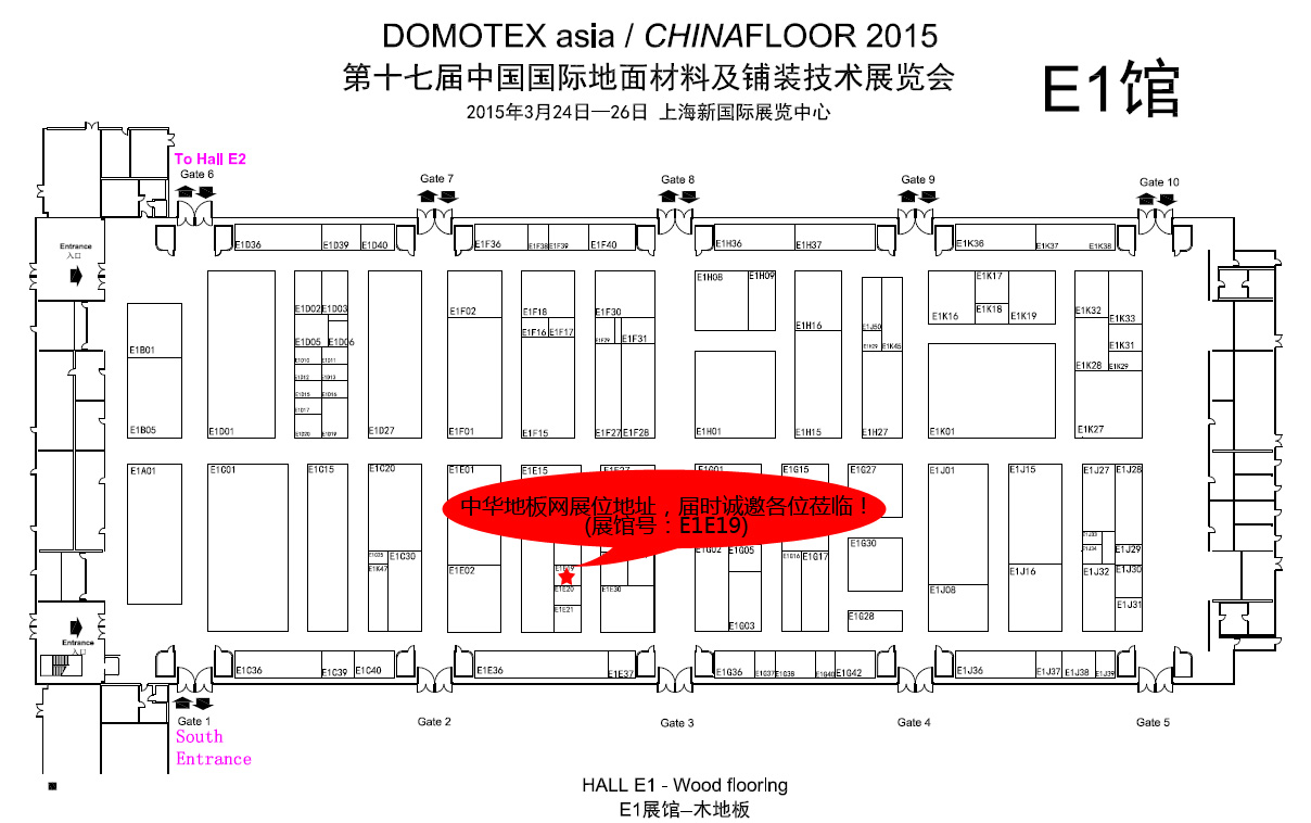 E1馆展位分布图(中华地板网展位号:E1馆E19)