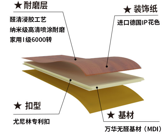 醛清强化木地板采用国际喷涂耐磨工艺,不仅完美体现花色的精致度,更是能达到家用I级的耐磨度,经国家权威检测甲醛含量只有0.016mg/m3,比新国标E1远低87%,远优于F4星,如此硬实力数据,行业仰望。