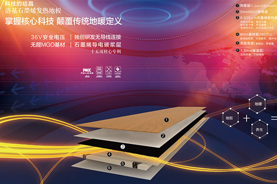 “石墨烯发热地板是在产学研合作强强联合的基础上研发出来的,江南石墨烯研究院是专注于石墨烯新材料研发与应用的机构。洛基与研究所展开深度合作,共同研发出地板、地暖、养生三效合一的新型地暖产品,这款可以说奠定了全球地板采暖行业基数领先地位。”