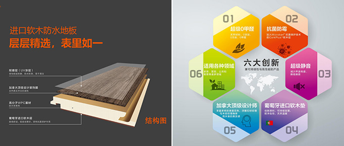 “为什么选择研发软木地板?首先是舒适,软木是软木橡树的树皮,每立方厘米有4000万个天然的细胞体,每个细胞都是一个密闭的气室,因此具有保温和降噪音的天然功能;其次是安全,洛基进口软木防水地板采用Microban® 抗菌保护技术的CorkPlus™软木层,不吸附灰尘,能够抵抗细菌和真菌的不良影响;同时有益关节健康、柔软回弹性耐冲击,基本适用于任何领域。”